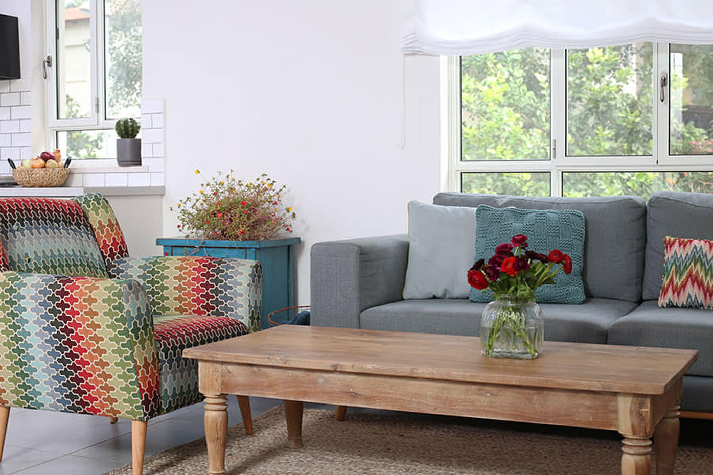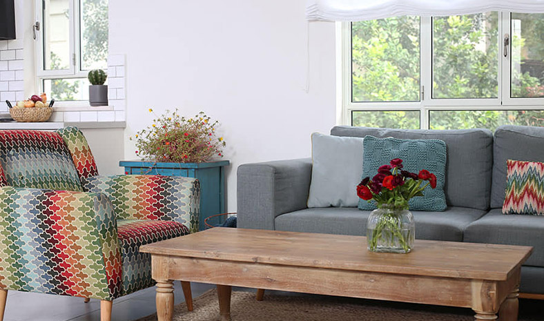 את הצבעוניות שילבנו בפרטי טקסטיל וריהוט.