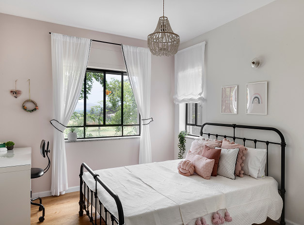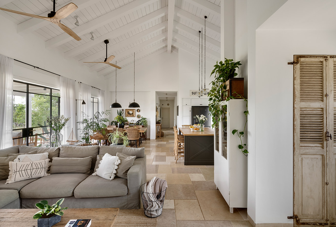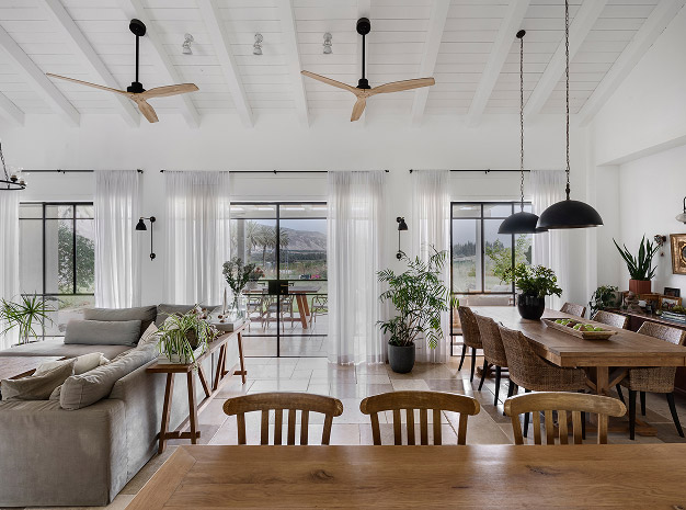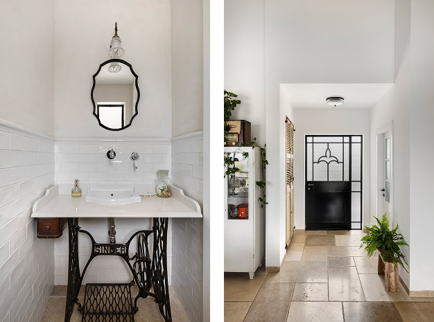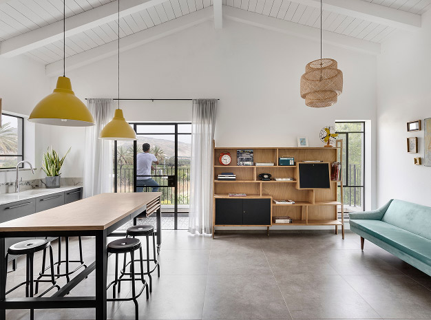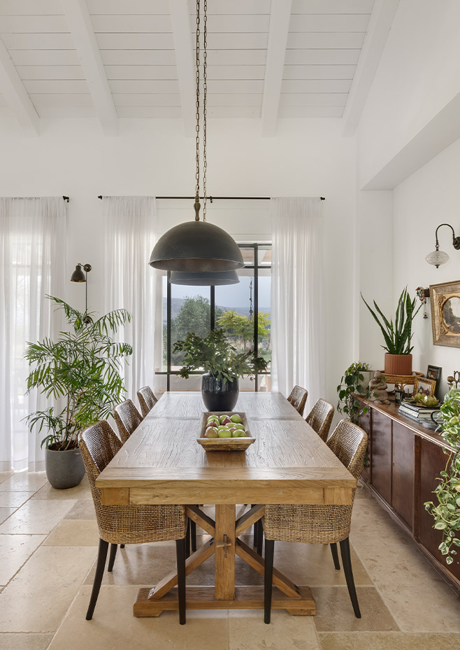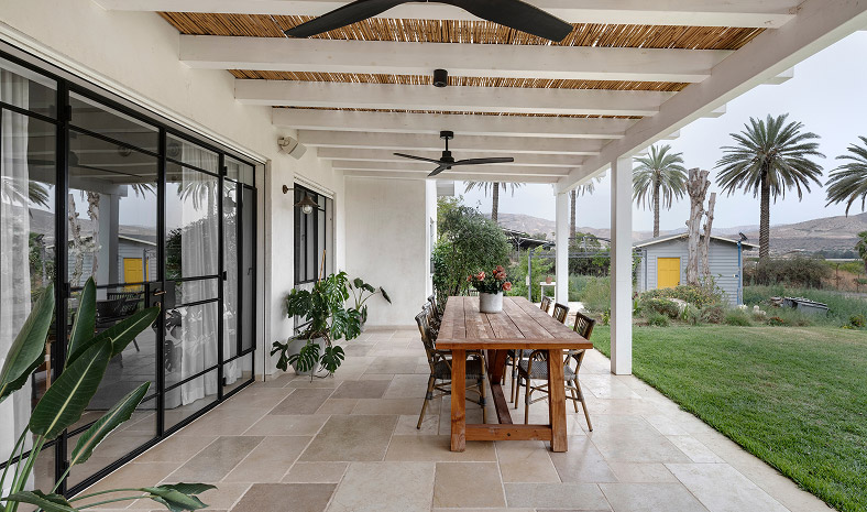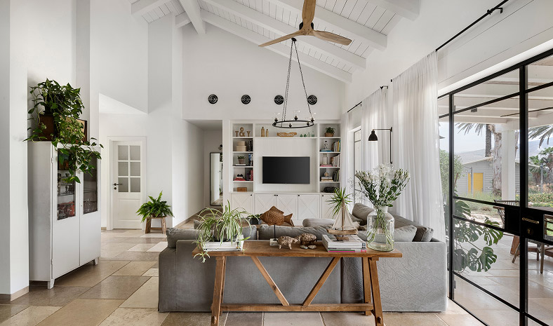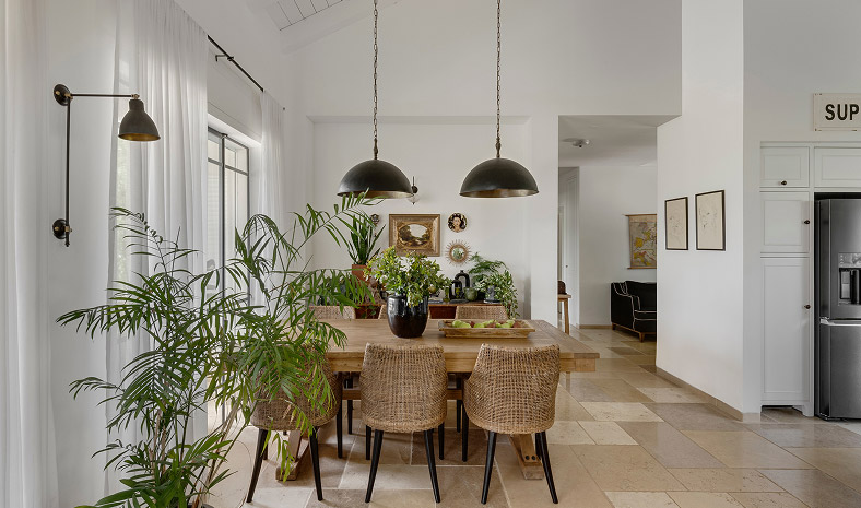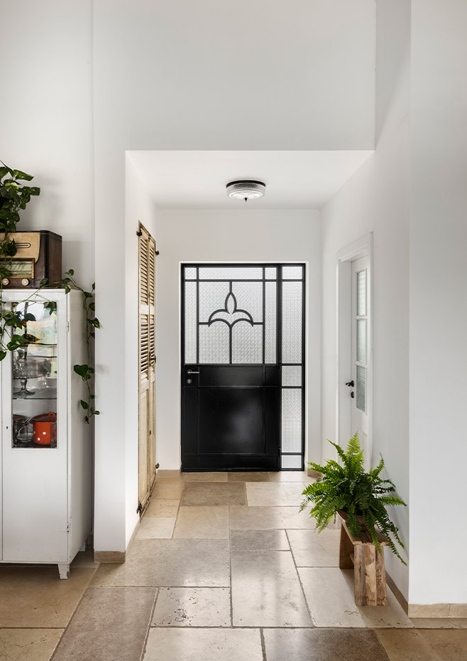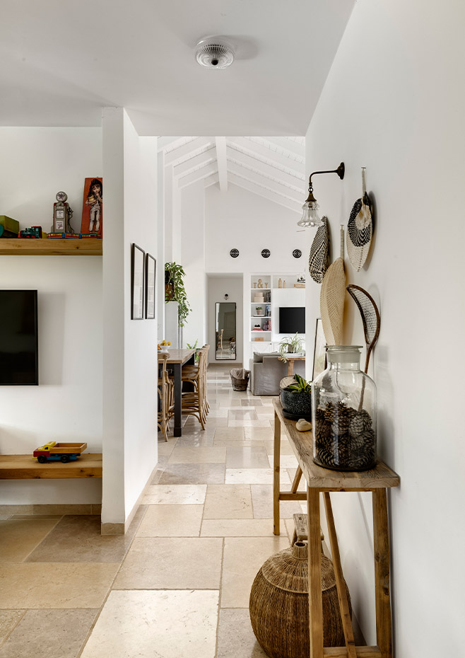 בתכנון היה לנו חשוב להשתמש בחומרים טבעיים, שהזמן עושה להם טוב והם מתיישנים בצורה יפה וטבעית: רצפת האבן הקרירה, תקרת העץ הגבוהה והבהירה המרחיבה לנו את הלב והנפש, חלונות הברזל ופרקט העץ הטבעי שבחדרי השינה.