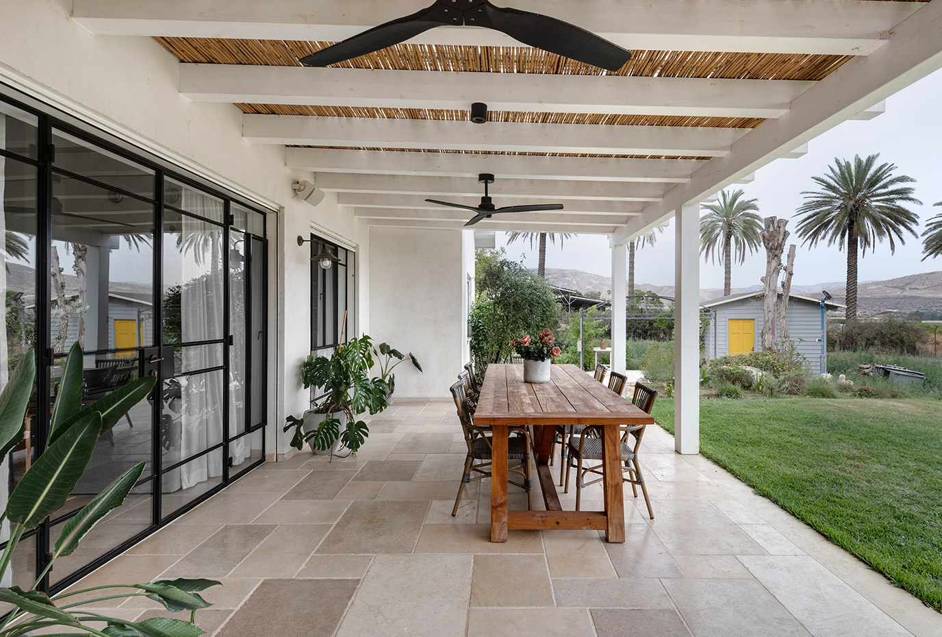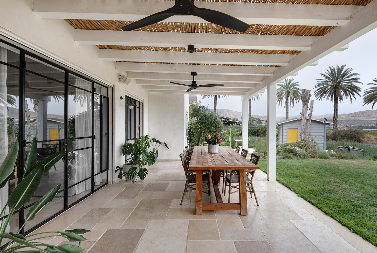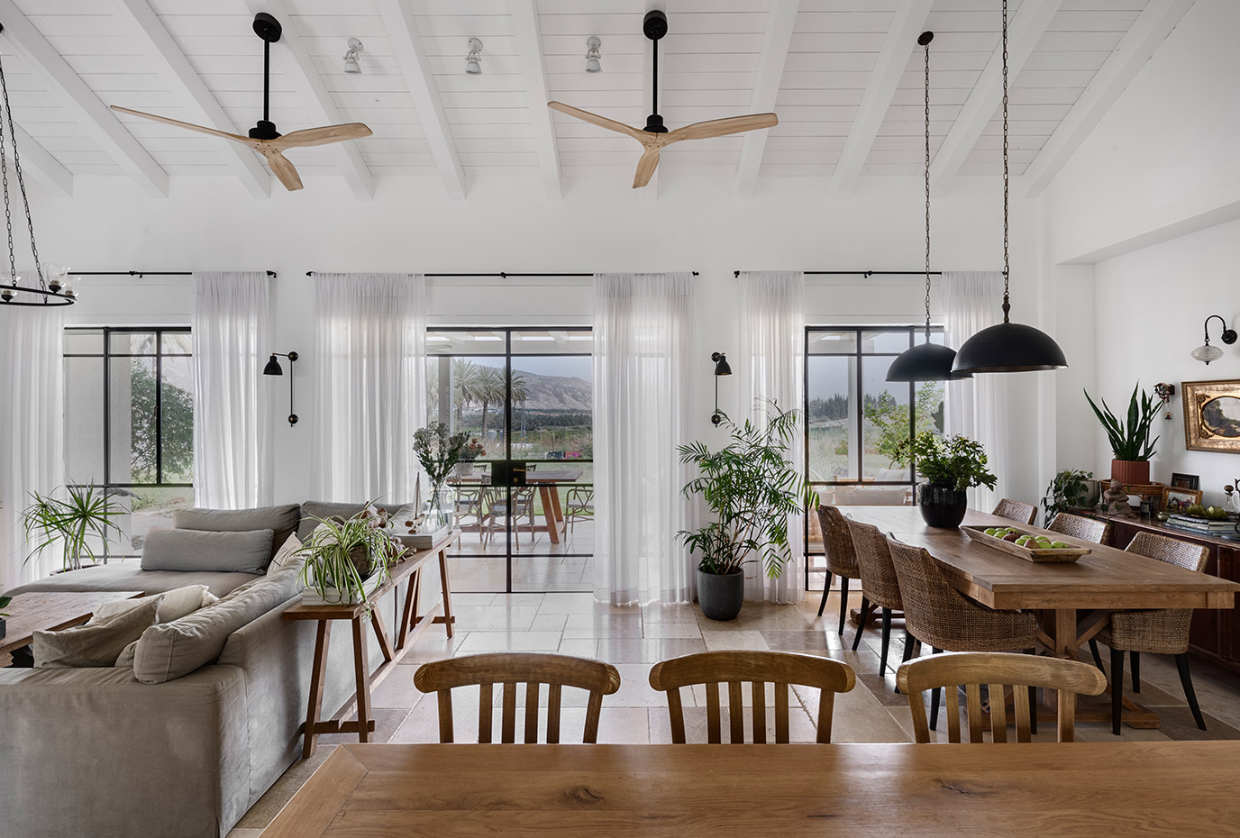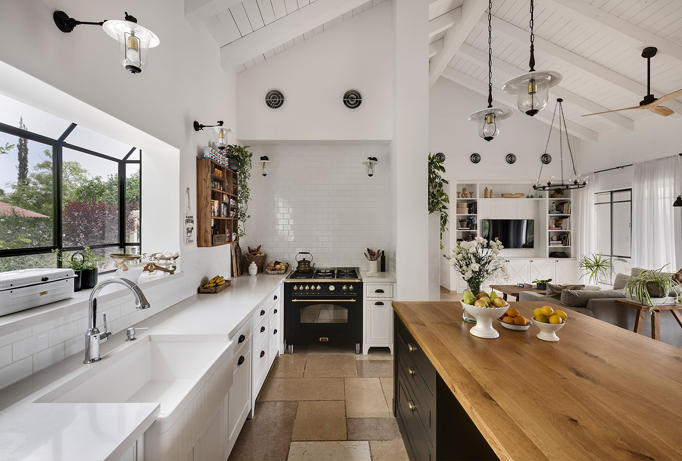 בתכנון היה לנו חשוב להשתמש בחומרים טבעיים, שהזמן עושה להם טוב והם מתיישנים בצורה יפה וטבעית: רצפת האבן הקרירה, תקרת העץ הגבוהה והבהירה המרחיבה לנו את הלב והנפש, חלונות הברזל ופרקט העץ הטבעי שבחדרי השינה.