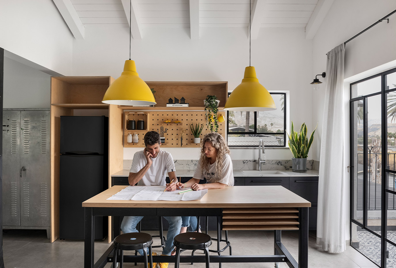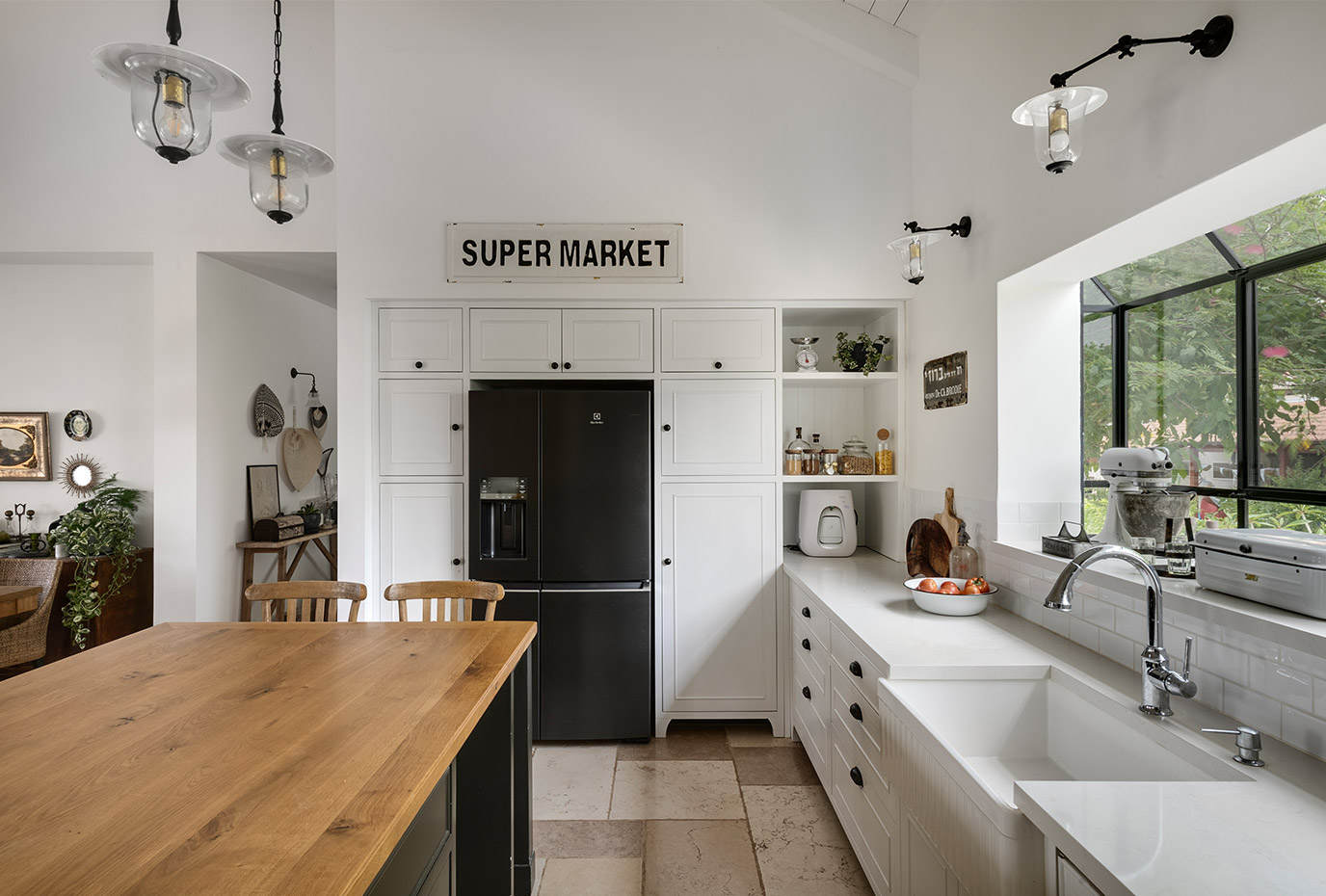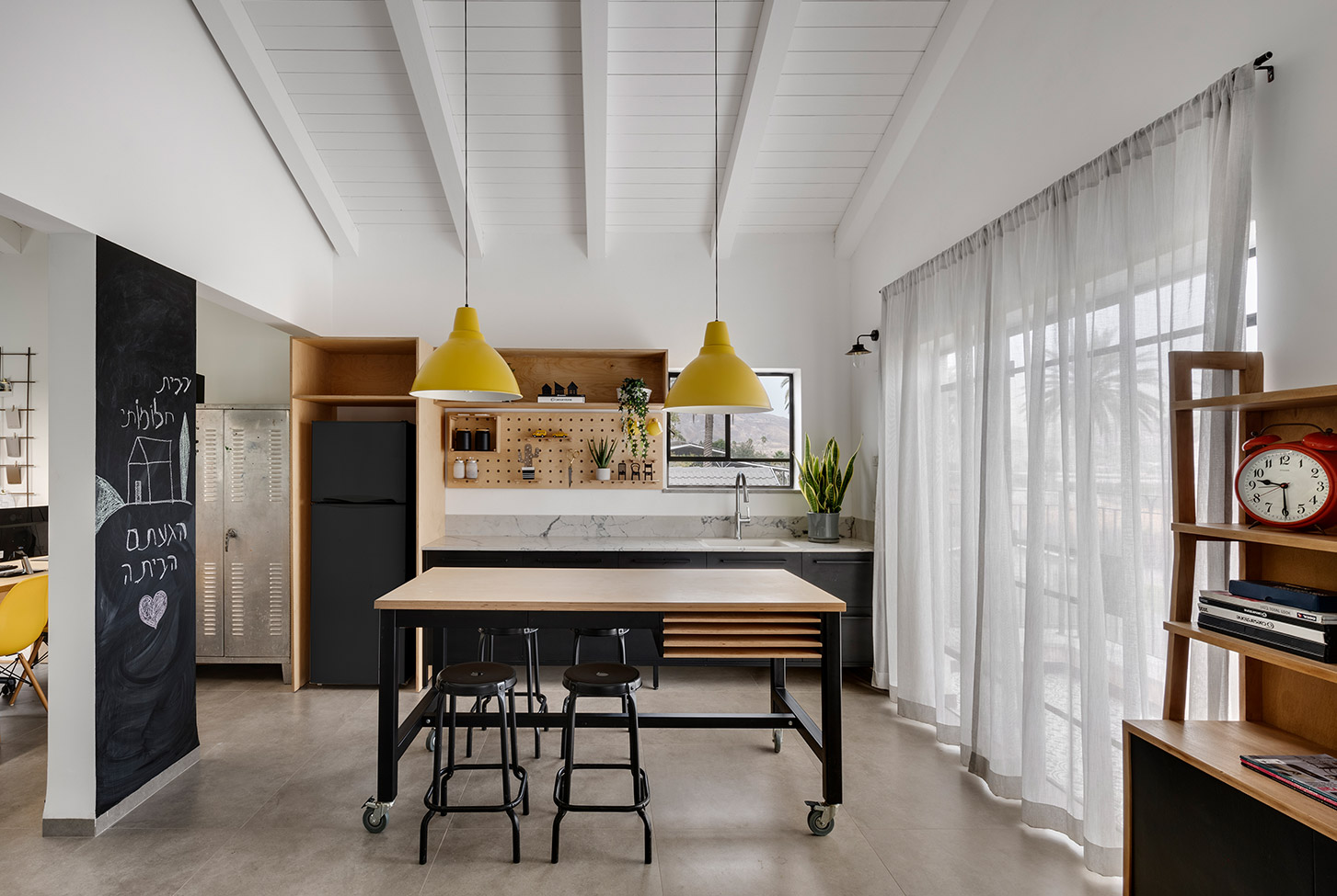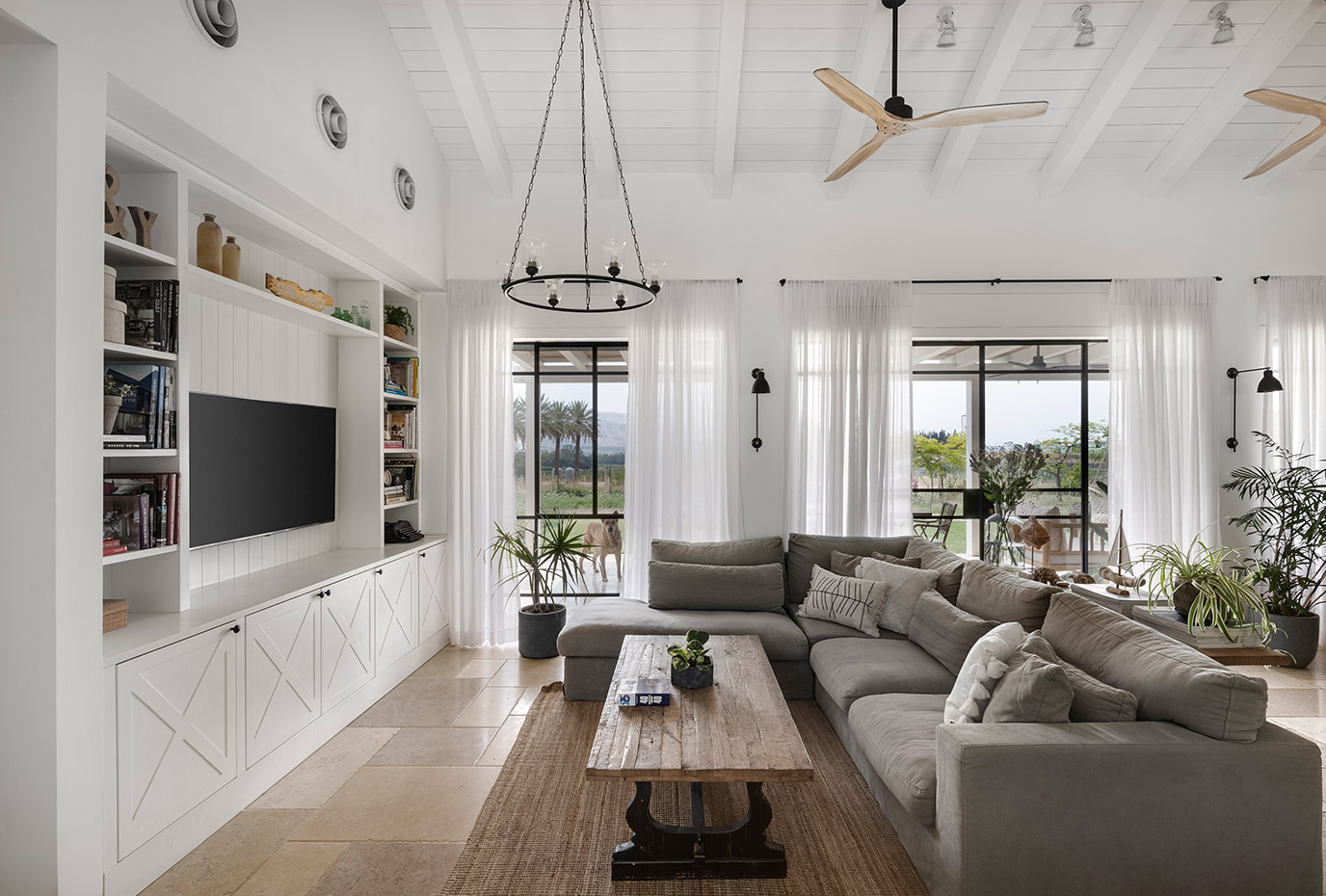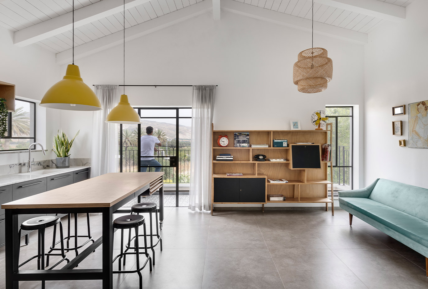 בתכנון היה לנו חשוב להשתמש בחומרים טבעיים, שהזמן עושה להם טוב והם מתיישנים בצורה יפה וטבעית: רצפת האבן הקרירה, תקרת העץ הגבוהה והבהירה המרחיבה לנו את הלב והנפש, חלונות הברזל ופרקט העץ הטבעי שבחדרי השינה.