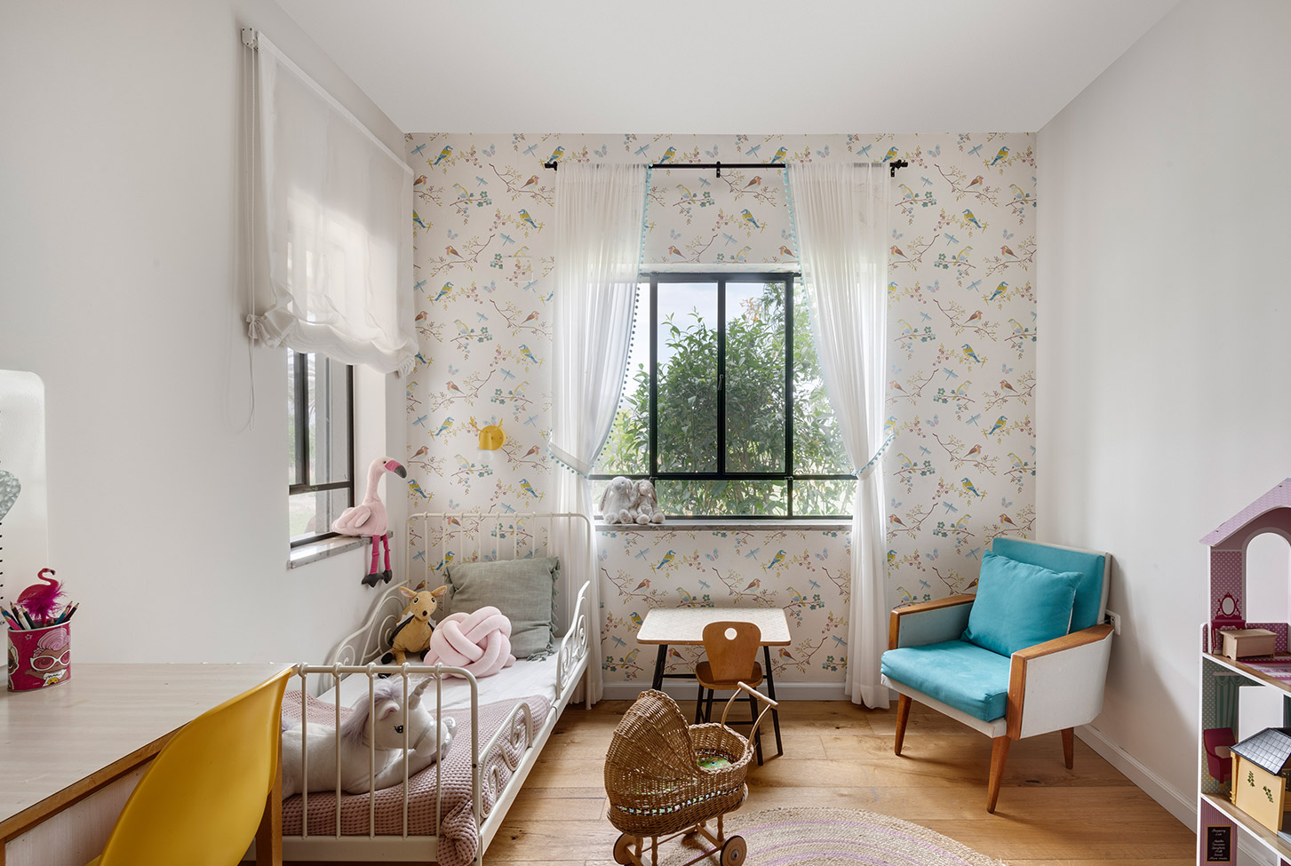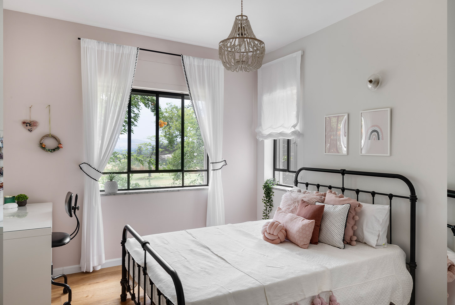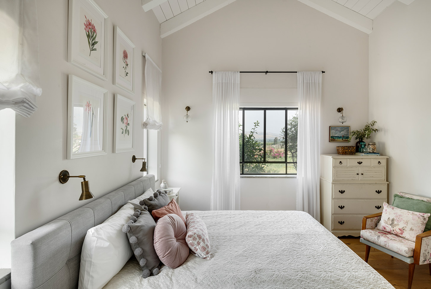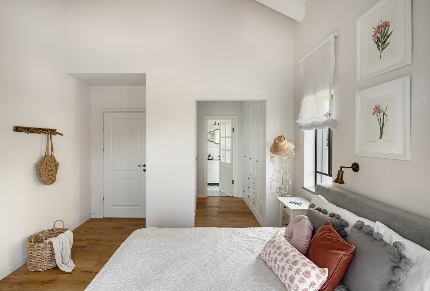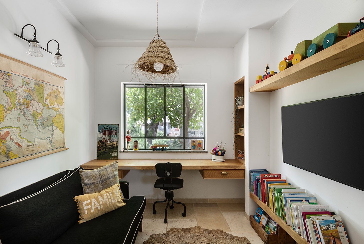 בתכנון היה לנו חשוב להשתמש בחומרים טבעיים, שהזמן עושה להם טוב והם מתיישנים בצורה יפה וטבעית: רצפת האבן הקרירה, תקרת העץ הגבוהה והבהירה המרחיבה לנו את הלב והנפש, חלונות הברזל ופרקט העץ הטבעי שבחדרי השינה.