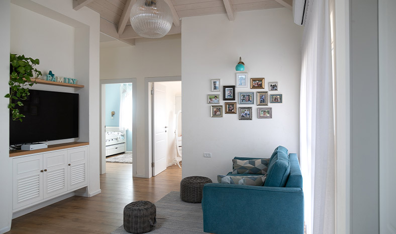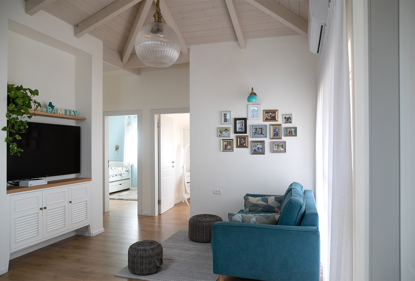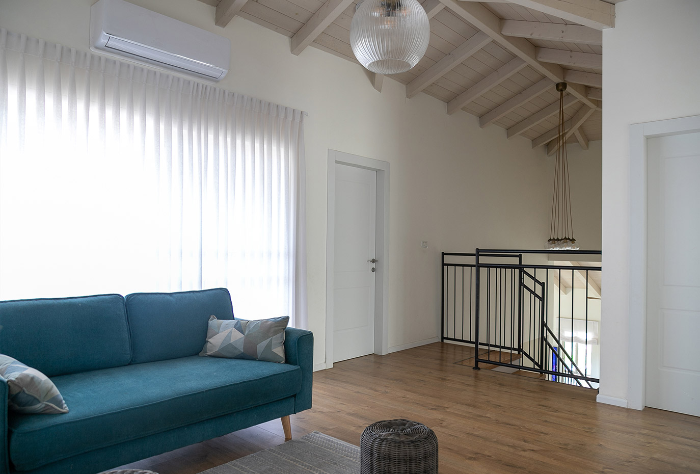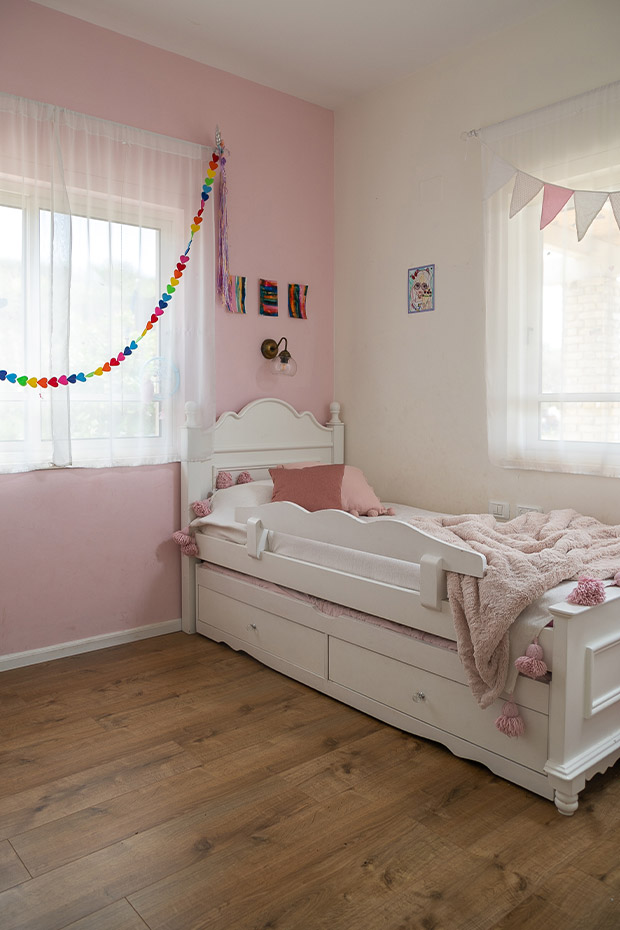 בקומה העליונה, חדרי הילדים ופינת משפחה אינטימית, עם יציאה למרפסת ילדים פרטית.