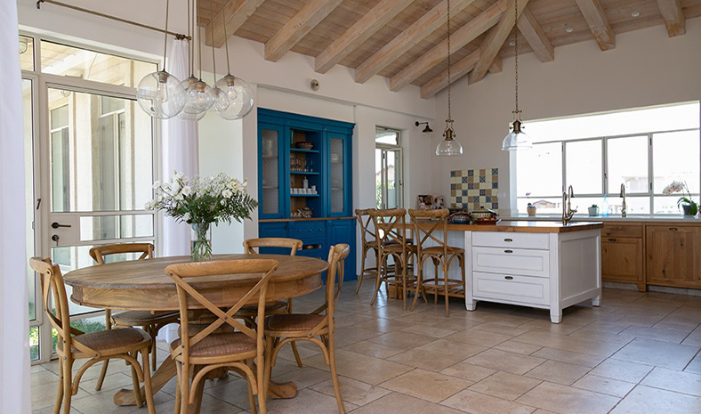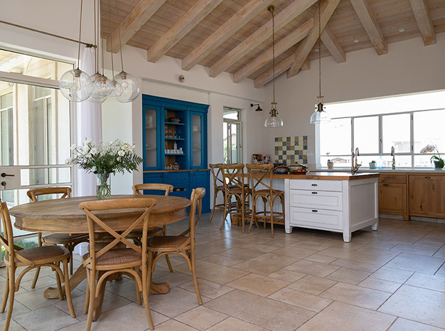 נבחרו חומרים המשדרים כפריות טבעית וחמימה, בהשראה עיצובית של בתים ספרדים.